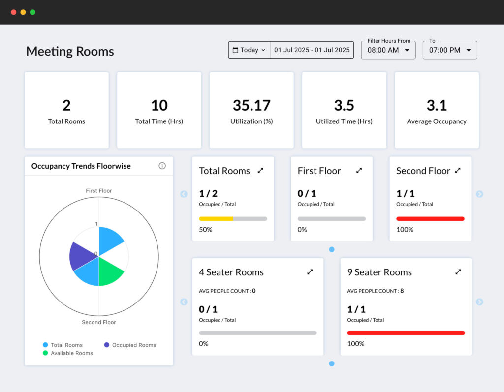 Admins access data on usage, idle time, and booking trends for better space management.